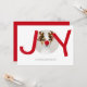 A colourful Merry Christmas Joy Holiday Photo card from Ricaso - designed with a bold red chunky typography text to the front and a photo placement template - this simple modern bright red design is sure to be a hit with family and friends .. easy to add your own text and photo - Send your greetings in style this holiday with a personalised card - also available in different colours in store