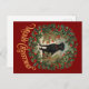 Framed by a lush wreath of green holly leaves and bright red berries, the black Labrador sits proudly, wearing a red collar that adds a subtle, cheerful touch to the scene. The wintry background, with softly falling snow and a peaceful woodland setting, brings a nostalgic Christmas charm, reminiscent of classic holiday cards. Ideal Christmas gift for labrador lovers.