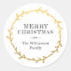Merry Christmas Laurel Wreath Gold Name Classic Round Sticker
