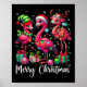 Merry Christmas Lights Flamingo Santa Hat Snow Xma Poster