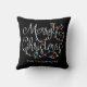 Merry Christmas Lights Script Personalised Name Throw Pillow features the text "Merry Christmas" in modern calligraphy script with your personalised name on a black background. Personalise by editing the text in the text boxes provided. Perfect for Christmas gifts and decorating the home for the holidays. Designed by ©Evco Holidays www.zazzle.com/store/evcoholidays