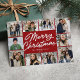 Send holiday cheer with this dark red 10 photo Christmas card. With its simple "Merry Christmas" in white script surrounded by a collage of photos, this design makes a great family Christmas card, grandparent Christmas card, couple's Christmas card and more. The backer is a festive matching maroon with cute white dots and room for a custom message or family update. This simple holiday photo card by Lea Delaveris Design is part of a collection where you can find coordinating address labels, Christmas gift tags and more. It's also available in other colours and styles and as a digital Christmas card download.