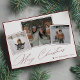 Merry Christmas minimal script 3 photo collage red Holiday Card