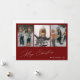 Minimalist red and white simple chic 3 family photos Merry Christmas holiday card template with text message.
