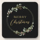 Cork acrylic coaster set featuring a minimalist watercolor wreath with red floral and green foliage accents. This elegant wreath frames the greeting "Merry Christmas". Makes a great gift.