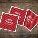 This holiday Christmas design features merry Christmas holiday party red, a striped table cocktail décor, minimalist red modern script, merry Christmas calligraphy typography, holiday party dinner tableware dinner, luncheon dinner cocktail, a festive whimsical red and white, happy holidays seasonal, Christmas holiday party paper napkin, Christmas party supplies