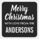 Trendy, minimalist, modern, black and white christmas gift tag stickers with the text Merry Christmas with love from the (and then the name of the family).