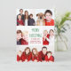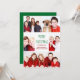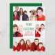 This cute, trendy Merry Christmas card features a modern layout of 5 family photos on a white background with red typography. This beautiful photo holiday card features your own photograph collage surrounding your message and family name in green.