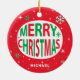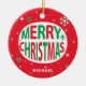 Merry Christmas Modern Red Holiday Personalised Ceramic Ornament