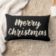 Merry Christmas Modern Rustic Simple Script Black Lumbar Cushion