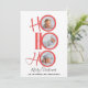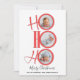 This design features an whimsical cute merry modern simple cute script,3 three picture photo collages, minimalist hohoho Santa typography, ho ho ho merry Christmas, clean trendy red and green, minimal circle photo multi collage, modern elegant simple trendy, modern calligraphy script font, simple and minimal whimsical style, Santa laugh quote saying
