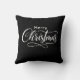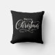 Modern Merry Christmas script throw pillow. The design features the text "Merry Christmas" in white brushed script with white holly berries and swirl accent elements. The black background can be customised. Makes for the best personalised gift for yourself, your friends, family members and even neighbours. We have 35+ more Christmas pillows in our collection that you will definitely love. Please check it out and get the best Christmas gift with special wishes for your special people. Merry Christmas!