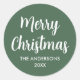 Merry Christmas Modern Script Custom Name Green Classic Round Sticker