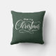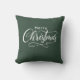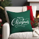 Modern Merry Christmas script throw pillow. The design features the text "Merry Christmas" in white brushed script with white holly berries and swirl accent elements. The emerald green background can be customised. Makes for the best personalised gift for yourself, your friends, family members and even neighbours. We have 35+ more Christmas pillows in our collection that you will definitely love. Please check it out and get the best Christmas gift with special wishes for your special people. Merry Christmas!