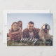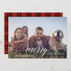 Send holiday cheer to your family and friends. Modern script holiday photo card with red and black plaid on the back.