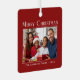 Modern Christmas tree ornaments with an elegant style. These amazing holiday ornaments offer a stylish typography greeting that reads, "Merry Christmas, Your Family Name and the Year". The custom design features your favourite photo or family picture on the front, highlighted by a unique modern gradient frame in white on a regal red background. The back of the ornament features a text space for your custom message. Makes a fantastic keepsake gift.