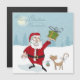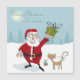 This modern holidays design features a cartoon of a whimsical Santa Claud with his cat on a winter background as the snow falls with the text "Merry Christmas" in stylish calligraphy. Fabulous Christmas gifts.. #christmas #holidays #seasonal #festive #winter #snow #snowflakes #cat #santa #santaclaus #modern #chic animals #cool #fun #merry #merrychristmas #illustration #gift #christmasgifts #greetings #magnet #christmascards #personalised #personalised #name #stationery #holidaycards