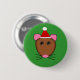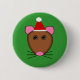 This button features a funny cartoon of a Christmas mouse with big round eyes, pink ears, a small pink nose and cute little twitchy whiskers. The mouse is wearing a red and white Santa hat ready for Christmas.