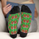 This awesome pair of patterned crew socks features a funny cartoon of a Christmas mouse with big round eyes, pink ears, a small pink nose and cute little twitchy whiskers. The mouse is wearing a red and white Santa hat ready for Christmas.