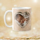 Make this holiday season extra special with our custom Christmas mug for mum! Featuring a beautiful gold and white snowflake background, this festive mug showcases a heart-shaped photo of your baby, adding a personal and heartfelt touch. The words Merry Christmas mum is displayed, making it a perfect gift that combines warmth, love, and holiday cheer.