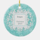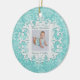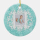 Merry Christmas Mummy and Daddy personalised picture ornament in winter snowflakes - white on aqua with customisable snow medallion on back. Upload your favourite photo! Customise the Date too! Perfect Holiday gift or stocking stuffer for parents, grandparents, aunts and uncles, family and friends. Personalise it with your name and date on back.