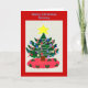 Colourful Christmas tree with a bright star on top, ornaments, candy canes, and JOY written on a red holly tree skirt with red berries and green holly leaves. Lovely Christmas card for a child to give to their special Mummy. Original Artwork and Card Verse © 2012 TamiraZDesigns.