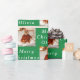 Merry Christmas Name Green White Photo Collage Wrapping Paper