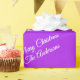 Personalise names, Merry Christmas, or message, in white script text on purple background; perfect for wrapping that special gift. Click “Edit Design” to change colours and type styles.