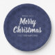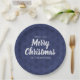 Merry Christmas Navy Blue Simple Snowflake Pattern Paper Plate