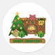 Merry Christmas near fireplace bonfire xmas tree Classic Round Sticker