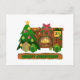 Merry Christmas near fireplace bonfire xmas tree Holiday Postcard