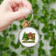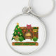 Merry Christmas near fireplace bonfire xmas tree Key Ring