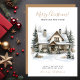 This rustic watercolor Merry Christmas new home for the holidays announcement card with a festively decorated house with snow, pine boughs, a wreath, red bows and trees would be perfect to send to your friends and family now that you have moved to a new home. The sentiment is customisable. Get enough so that everyone you know and love has your new address. They'll be so excited about your big move!