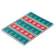 Merry Christmas illustration with Christmas tree and snowflakes decoration on red, white, blue and turquoise striped background