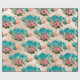 Merry Christmas Old Script Roses Rose Pink Green Wrapping Paper