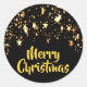 A black background with a cascade of golden shining stars, a bit of bling and luxury for Christmas. Golden letter and the text: Merry Christmas!