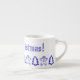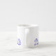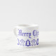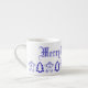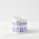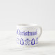 Merry Christmas! or your Name or Text Cute Gingerbread Man and Christmas Tree Pattern Blue and White Espresso Mug Unique Personalised Christmas Gift for Coffee Lovers.
