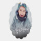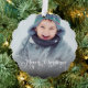 Simple and elegant Christmas ornament card featuring a fancy calligraphic "Merry Christmas" overlay text on your custom photography.