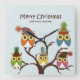 Merry Christmas Owls on the Tree Square Wall Clock