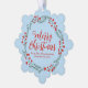 Merry Christmas pale blue and red modern script rustic wreath frame cute Christmas card / Ornament.