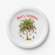 Merry Christmas Palm Tree Light Hawaiian Tropical Paper Plate