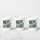 These cups showcase the words "Merry Christmas" in a bold print font plus green letters red outline with different size letters in the background in this X-mas theme and style. All cups come in a set of eight or more and holds 8 oz great for birthday parties, summer picnics, and events. All plates are FDA approved for food contact and keeps beverages warm or cool lids optional printed in USA.