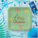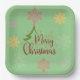 fun text of Merry Christmas with a tree and stars as well as pink, purple, green and yellow snow flakes.