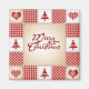 Red chequered Merry Christmas patchwork pattern is perfect for the holidays. Pattern includes a mix of Christmas trees and hearts.