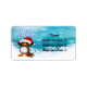 Merry Christmas Penguin Address Labels features a decorative turquoise background with snow and snowflakes, a Happy Penguin holding a colourful candy cane wearing a Santa hat. Decorative blue and white text is Merry Christmas. Just add your text and you are all set! Matches our Invitations, Greeting Cards, Postcards and Postage. Perfect for Holiday mailings.