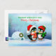 Two cute penguins pose before their little igloo festooned with a Christmas wreath in a snowy landscape. This cheery postcard is just right for sending a little holiday greeting to those penguin-lovers on your Christmas card list.