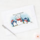 Merry Christmas Penguins building a Snow Cat Rectangular Sticker