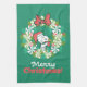 Merry Christmas Peppermint Holiday Wreath Tea Towel