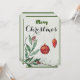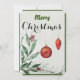 This stylish yet minimalist “Merry Christmas” seasons’ greetings and holiday card features a simple yet elegant holiday ornament, flower pine arrangement with shades of winter green.