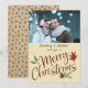 Spread some holiday cheer with this flat panel photo card that features the message "Merry Christmas" in festive red script lettering with evergreen and pinecone accents. The backs of these cards have a simple doodle style red snowflake pattern against a burlap style background. The rustic style of these Christmas cards is perfect for showing off your favourite outdoors and holiday photos.